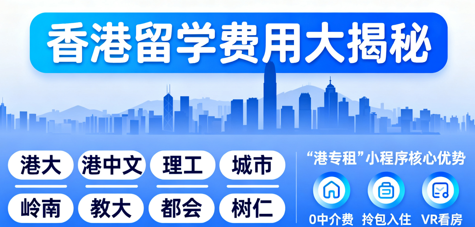 从上面几所学校的费用能看出,校外租房是留学开支里的一笔重要支出,而且很多留学生在租房时还会遇到找房难、怕被中介坑、看房麻烦等问题。不过别担心,有个叫 “港专租” 的小程序,简直是留学生租房的福音。0 中介费,不用给中介送冤枉钱;家具水电全包,真正拎包入住,不用自己操心这那;房源还多,全港热门地段都有,15 万 + 留学生都用过;最关键的是能 VR 看房,躺床上就能把房间看明白,不用顶着太阳瞎跑。